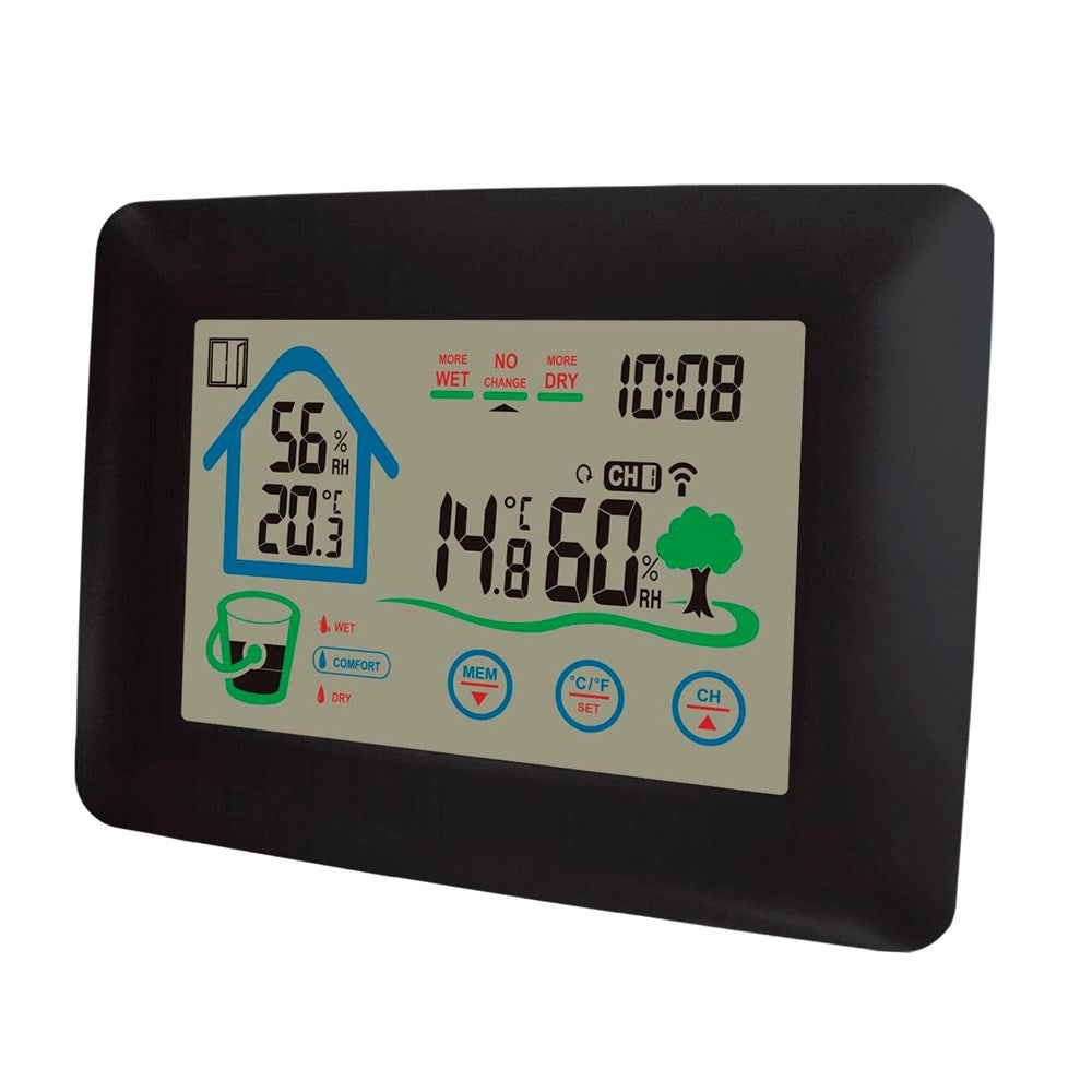 Vejrstationen registrerer automatisk maksimum- og minimumværdier og har en komfortindikator, der hjælper dig med at vurdere indeklimaet. Betjeningen foregår nemt via touch-knapper, og du kan frit vælge mellem Celsius eller Fahrenheit samt 12- eller 24-timers tidsformat.