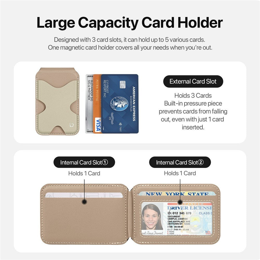 Magnetisk Kortholder - 5 Kort - Ståfunktion - MagSafe Kompatibel - Beige