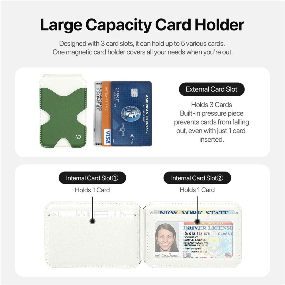 Magnetisk Kortholder - 5 Kort - Ståfunktion - MagSafe Kompatibel - Hvid / Grøn