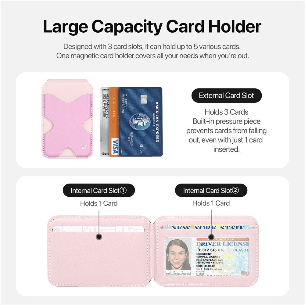Magnetisk Kortholder - 5 Kort - Ståfunktion - MagSafe Kompatibel - Lyserød