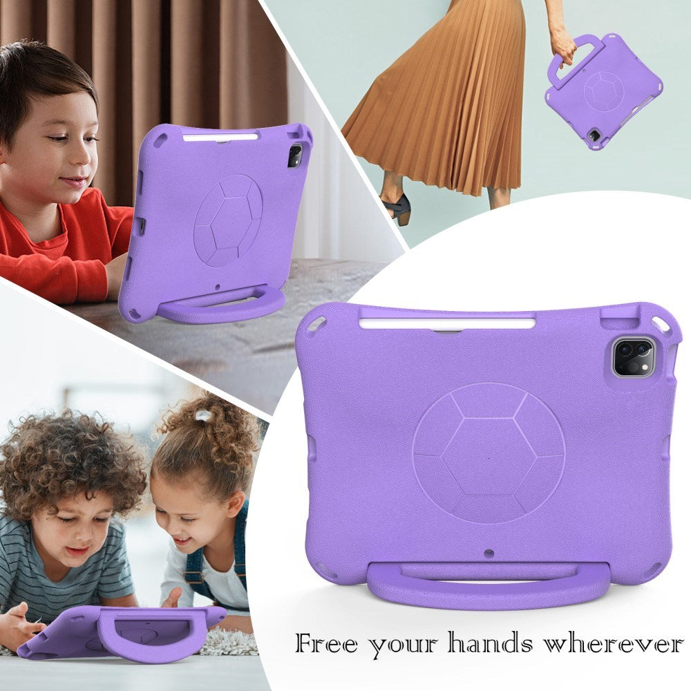 iPad Air 10,9" (2022 / 2020) / Pro 11" (2024-2018) Barnedeksel - Fotball - Stativ og håndtak - Lilla