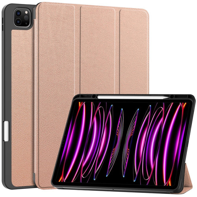 iPad Air 13" (2025 / 2024) Tri-Fold Leather Flip Cover m. Apple Pencil Holder - Rose Gold