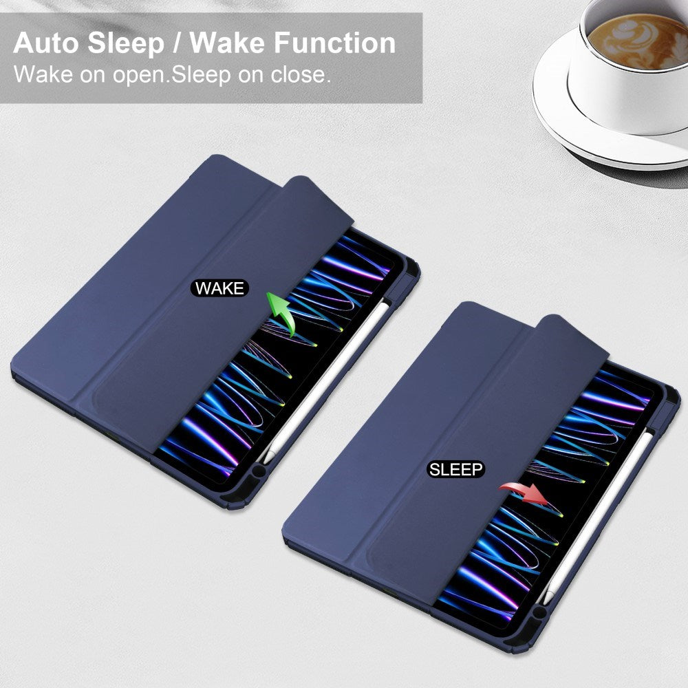 iPad Pro 11 (2024) Hybrid Flip Cover m. Penneholder - blå og gjennomsiktig
