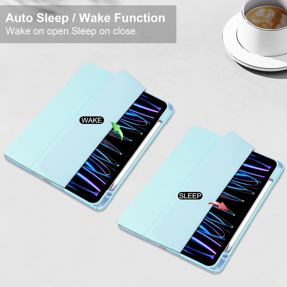 iPad Pro 11 (2024) Hybrid Flip Cover m. Penneholder - Lyseblå og gjennomsiktig