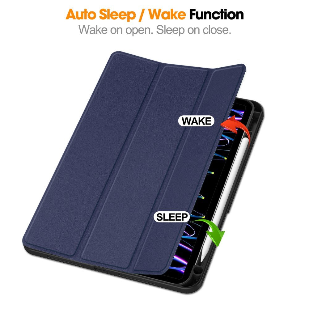 iPad Pro 11" (2024) Tri-Fold Leather Flip Cover m. Apple Pencil Holder - Blå