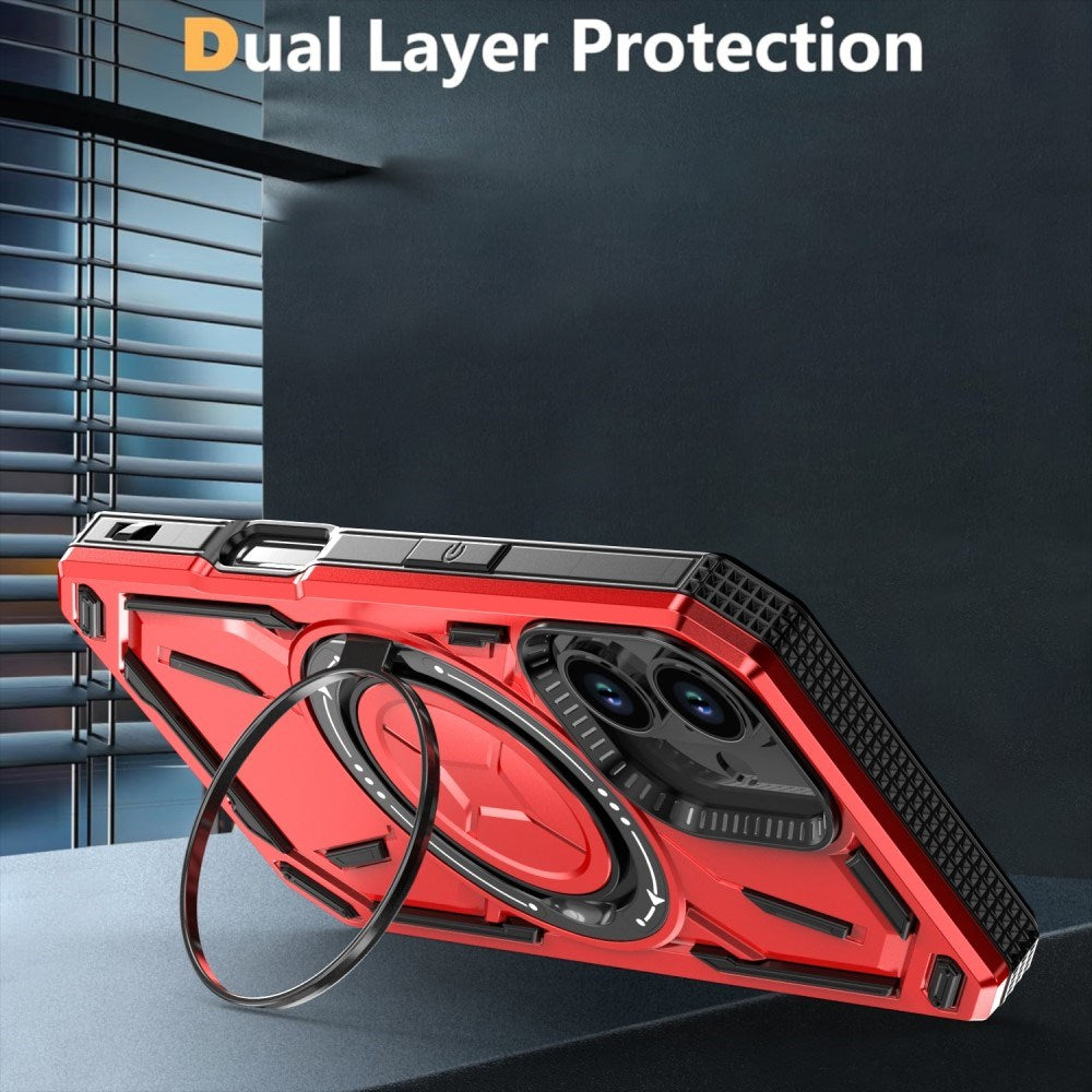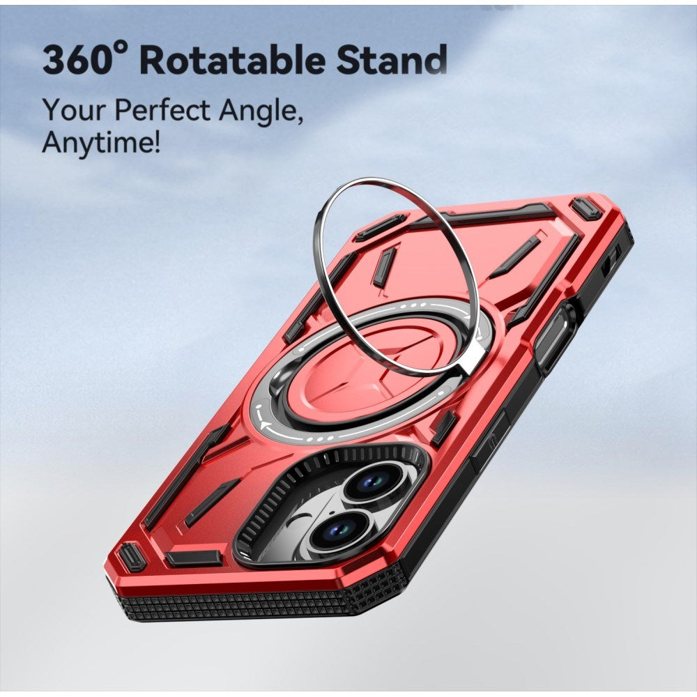 På baksiden av dekselet er det en avtagbar metallring som kan brukes til å forbedre grepet på telefonen og fungere som stativ for filmer og serier. Ringen kan roteres 360° for maksimal fleksibilitet og kan enkelt justeres til ønsket vinkel. Den er også magnetisk, noe som muliggjør enkel og sikker festing til ulike enheter, for eksempel en bilholder.