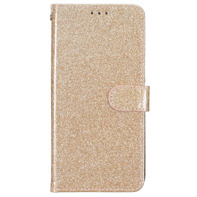 iPhone 16 Pro Leather Flip Cover m. Lommebok & stropp - Glitter - Gull