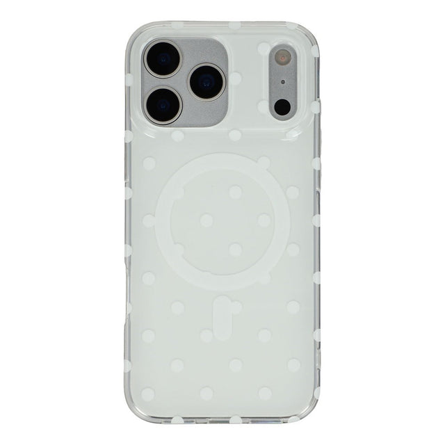 iPhone 17 Pro Hybrid Mobil Cover m. Polka Design - MagSafe Kompatibel - Gennemsigtig / Hvid