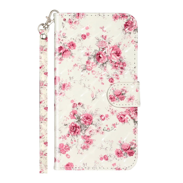 iPhone XR Leather Flip Cover m. Veske og stropp - blomster