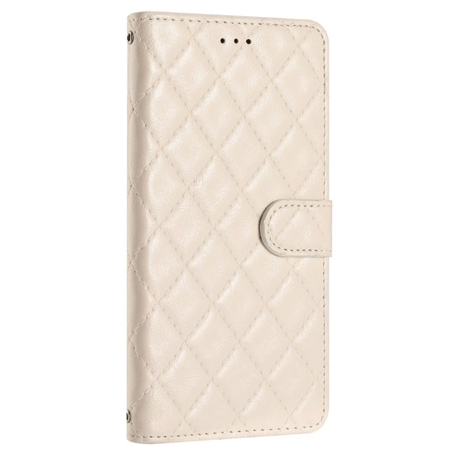 Motorola Moto G84 Leather Flip Cover m. Veske og stropp - Rhombus - Beige