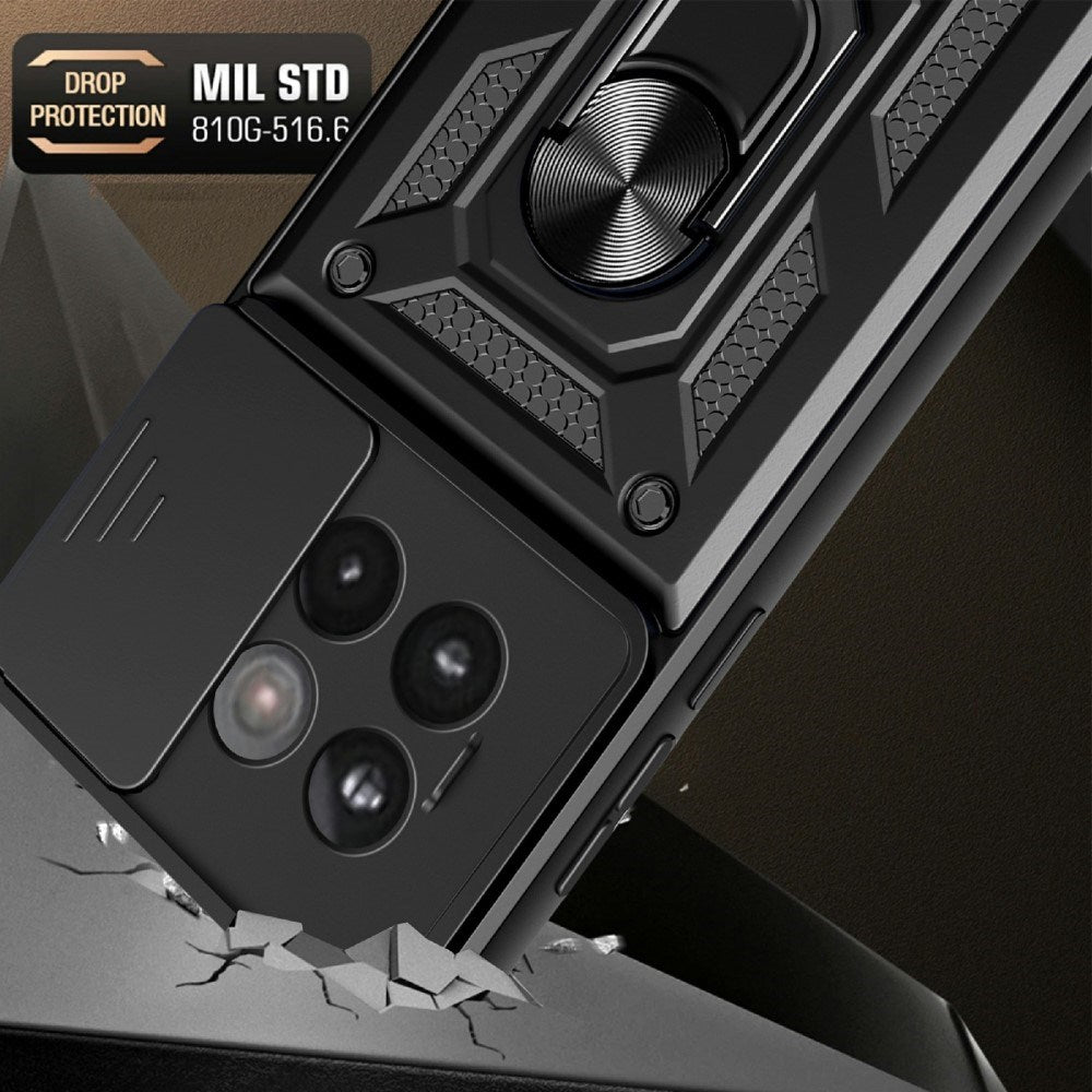 Utstyrt med støtbeskyttelse av militærkvalitet, beskytter dekselet effektivt telefonen din mot fall og støt. Den har også en avtakbar linsebeskyttelse som holder kameraet ditt trygt mot riper og skader. En integrert magnetisk metallplate gjør den kompatibel med magnetiske bilholdere for praktisk bruk i bilen (bilholder ikke inkludert).