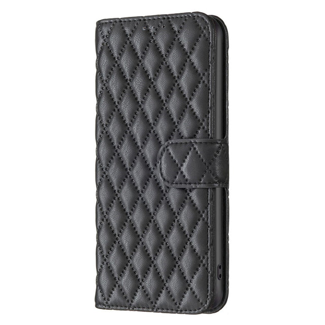 OnePlus Nord CE4 Lite (5G) Leather Flip Cover m. Lommebok og stropp - Rhombus - Svart