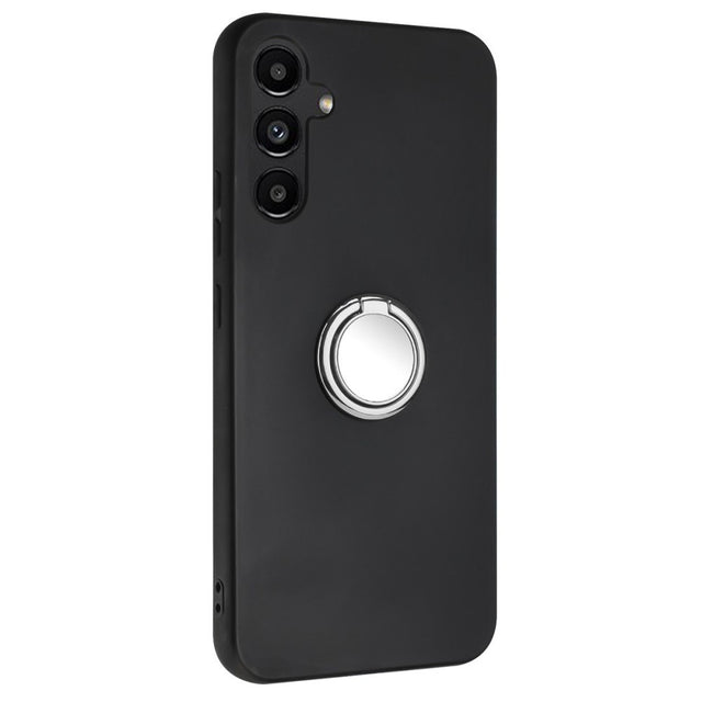 Samsung Galaxy A16 fleksibelt plastdeksel m. Magnetisk Ring Stativ - Svart m. Sølv ring
