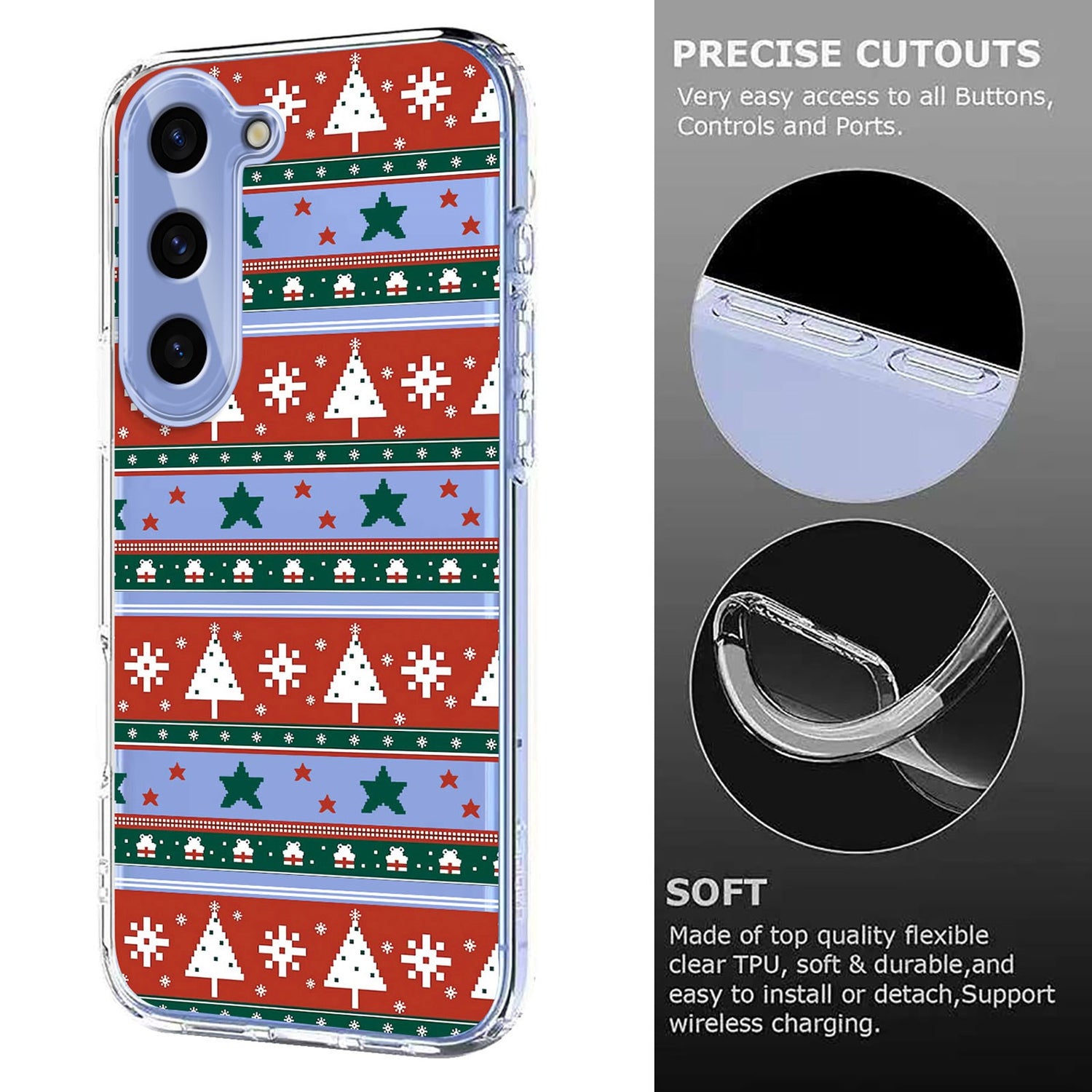 EIDERWOOD Samsung Galaxy S23 Fleksibelt Plast Jule Mobil Cover - Gennemsigtig / Mønster er i restordre og vil bli sendt så snart det er på lager igjen.