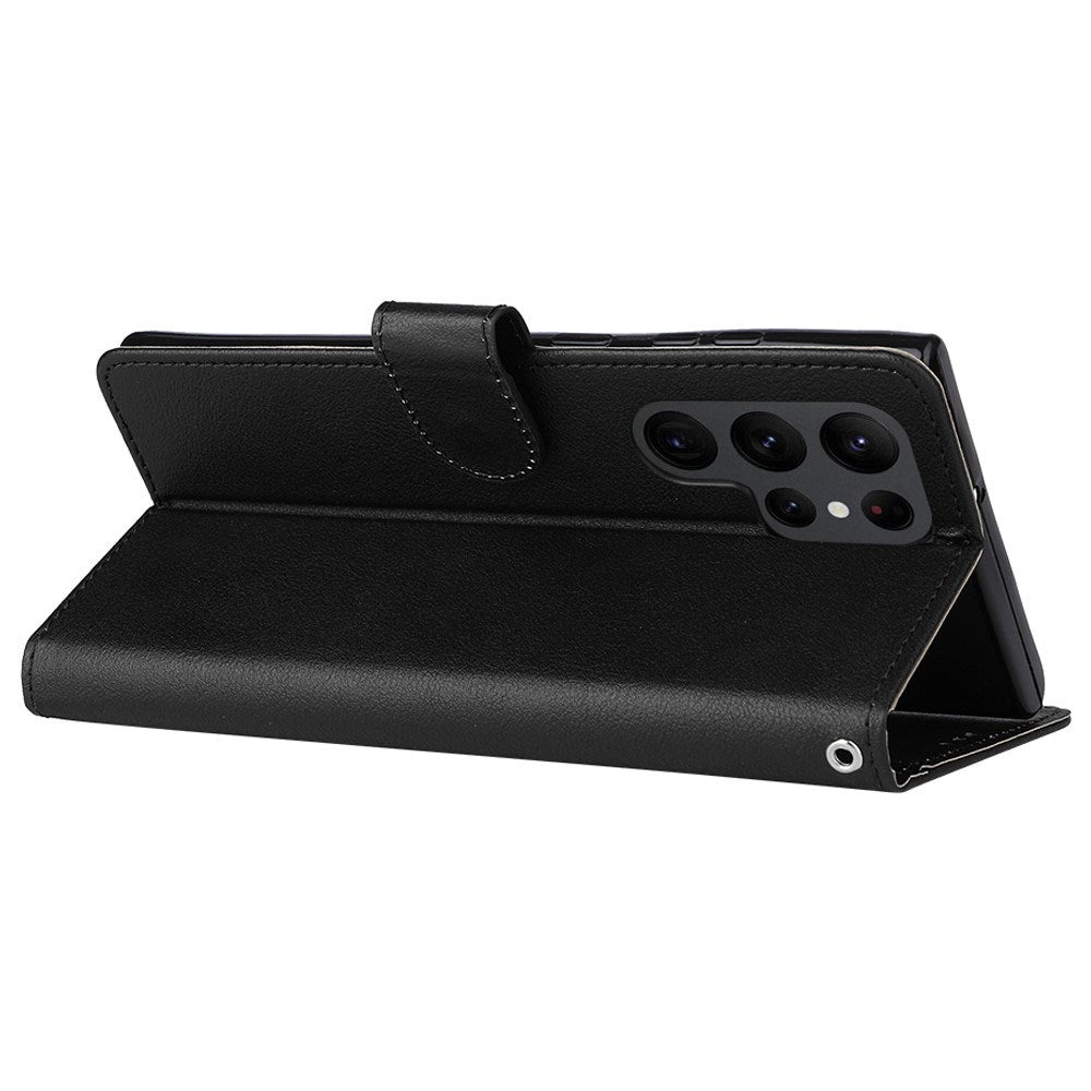 Samsung Galaxy S23 Ultra Blankt Kunstlæder Flip Cover m. Pung & Ståfunktion - Sort