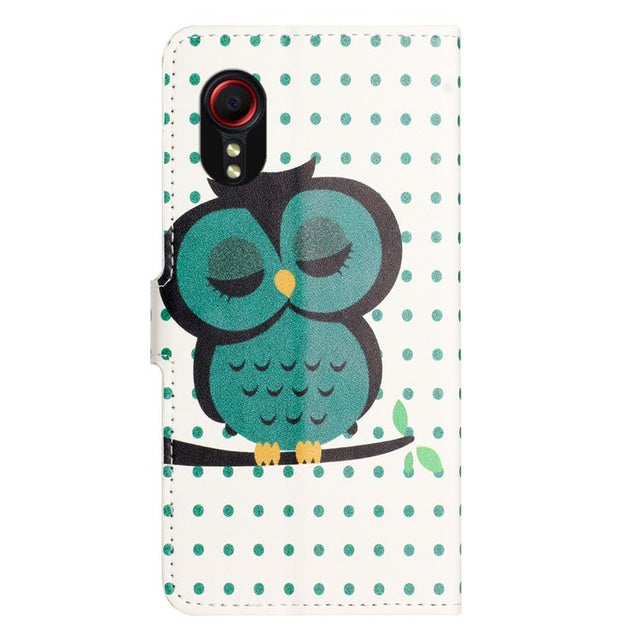 Samsung Galaxy Xcover 7 Flip Cover - Kortholder & Ståfunktion - Grøn Ugle