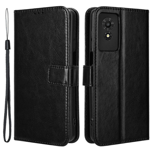 TCL 501 Blankt Kunstlæder Flip Cover m. Pung & Strop - Sort