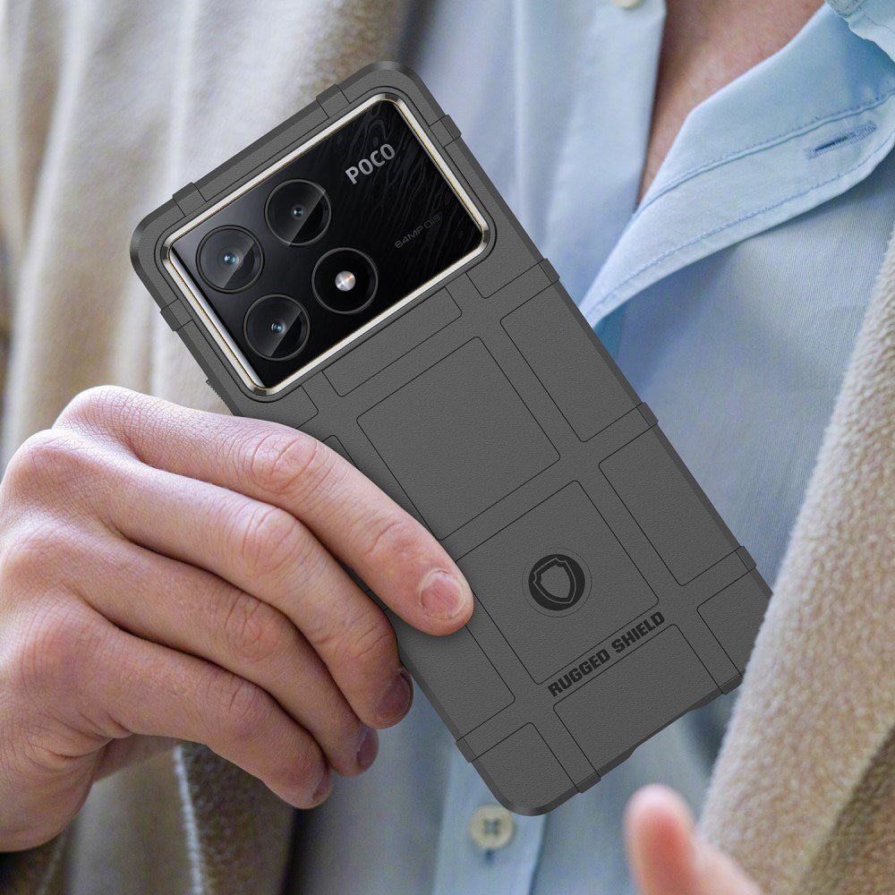 Her får du et robust og robust deksel til din Xiaomi Poco X6 Pro. Rugged Shield-dekselet er laget av tykk, men likevel fleksibel plast som gir et sterkt beskyttende lag for mobilen din.