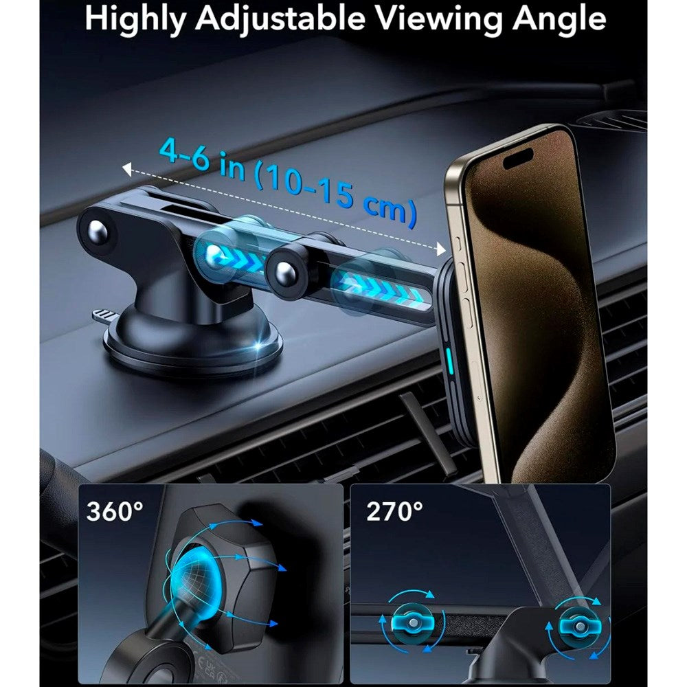 Mobilholder til Bil m. Trådløs Opladning til Instrumentbræt & Forrude - MagSafe Kompatibel - Sort