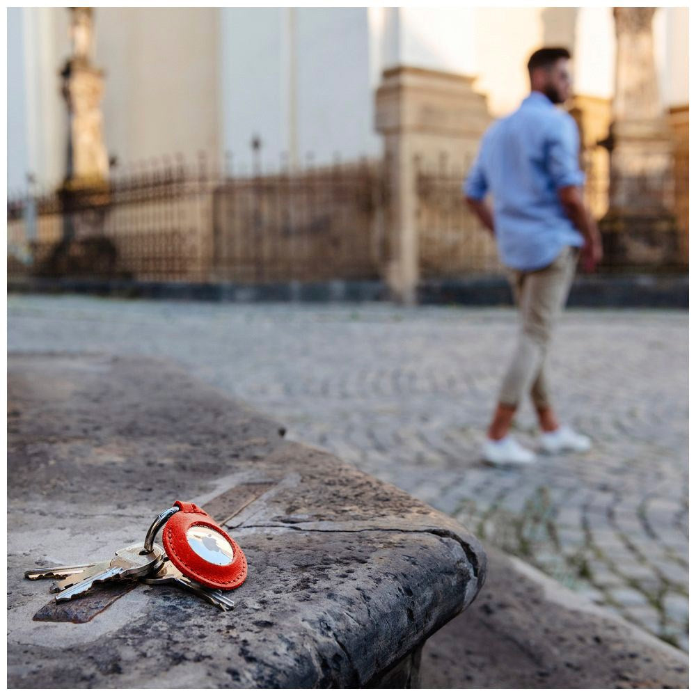 Fast ekte skinndeksel til Airtag er et eksklusivt, håndlaget tilbehør skreddersydd for din Apple Airtag.