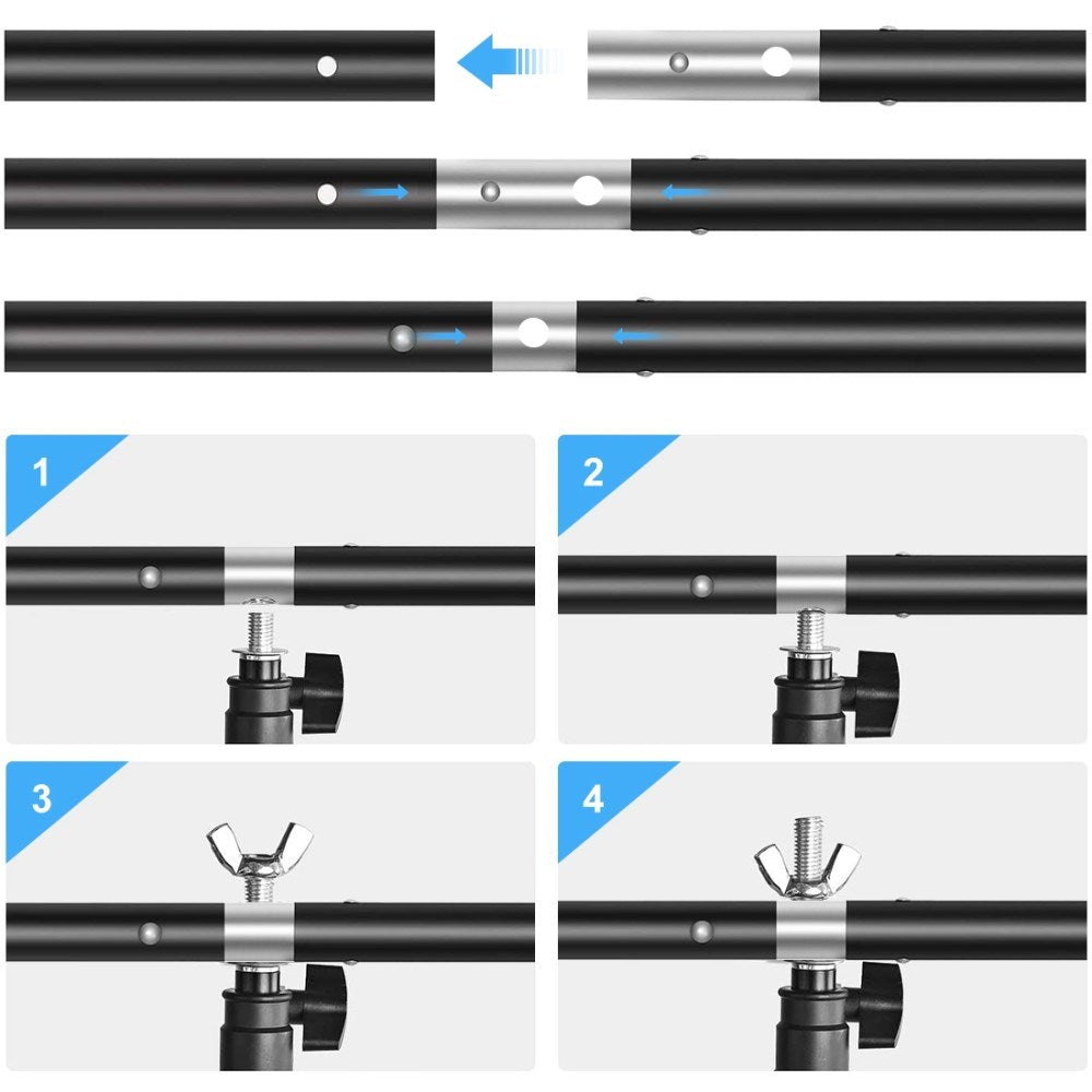 T-stativets design med kun én tripod bag baggrunden sparer plads og gør opsætningen hurtig og enkel. Trods det enkle design går du ikke på kompromis med stabiliteten – stativet står solidt, og baggrunden bliver siddende takket være de medfølgende klemmer.