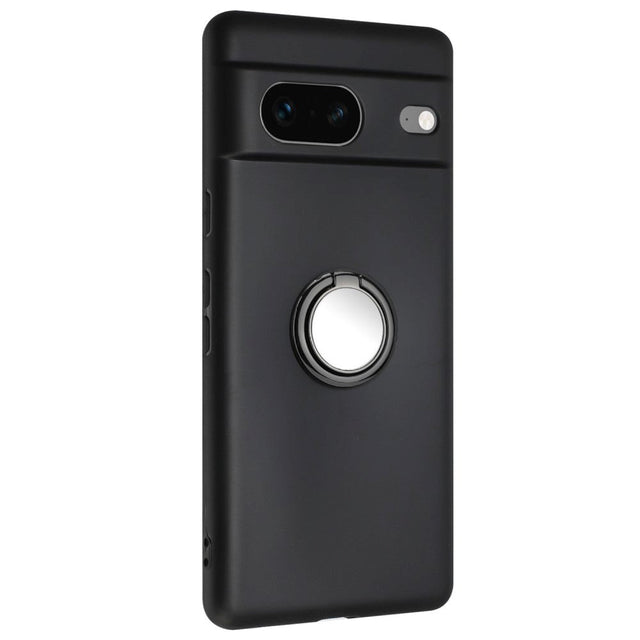 Google Pixel 8a fleksibelt plastdeksel m. Ring Stativ - Svart m. Magnetisk svart ring