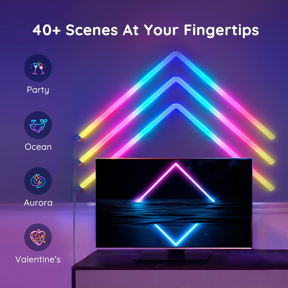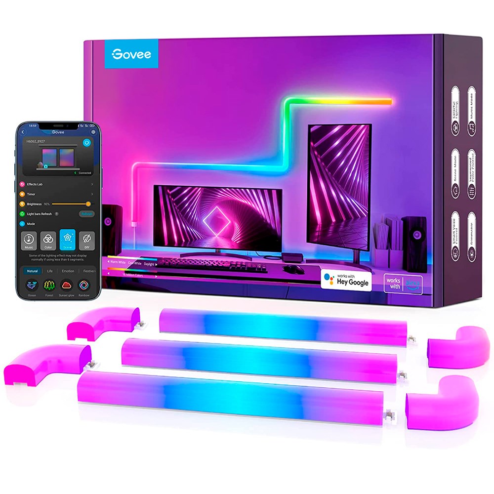 Govee Glide vegglampe er den ultimate løsningen for å skape den rette atmosfæren i ethvert rom. Med sin fortryllende belysning kan den forvandle samlingene dine til uforglemmelige øyeblikk. Med levende farger og dynamiske lyseffekter skaper den en festlig atmosfære som er perfekt for enhver festlig anledning. Samtidig gir den også en ekstra dimensjon til spillopplevelsen din ved å reagere på hver spillhendelse og trekke deg dypere inn i spillverdenen. Og når det er på tide å slappe av, kan du velge mellom en rekke lyseffekter og skape den perfekte atmosfæren for en koselig kveld hjemme. Govee Glide er din trofaste følgesvenn for å skape den ideelle atmosfæren, uansett anledning.