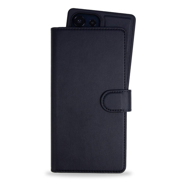 Overflaten på dette Samsung Galaxy S25 Ultra- dekselet er laget av kunstskinn, som gir et stilig utseende. På høyre side av dekselet er det også et avtagbart bakdeksel laget av hardplast, som gjør at bakdekselet kan brukes separat.