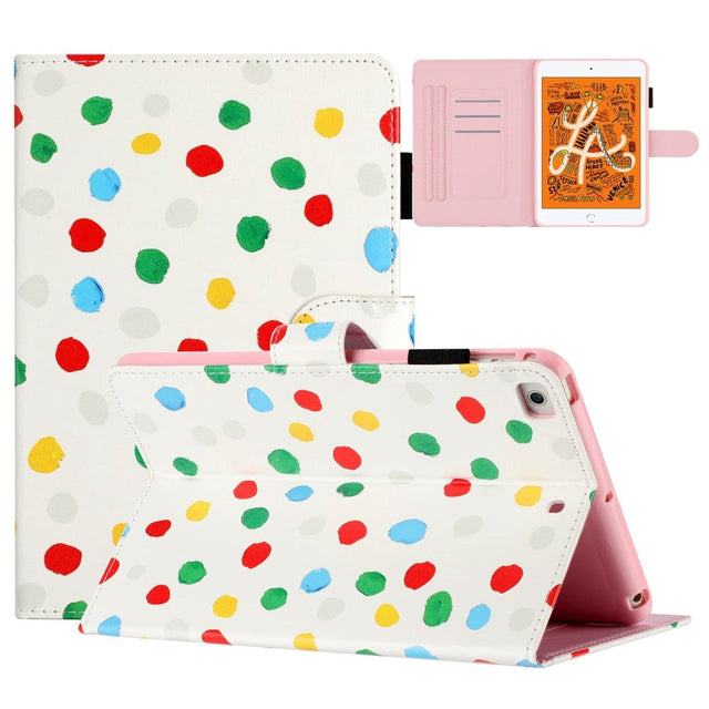 iPad Pro 9.7 (2016) / iPad Air / iPad Air 2 / iPad 9.7 (2017/2018) Leather Flip Cover m. Fargede prikker - Hvit / Multi