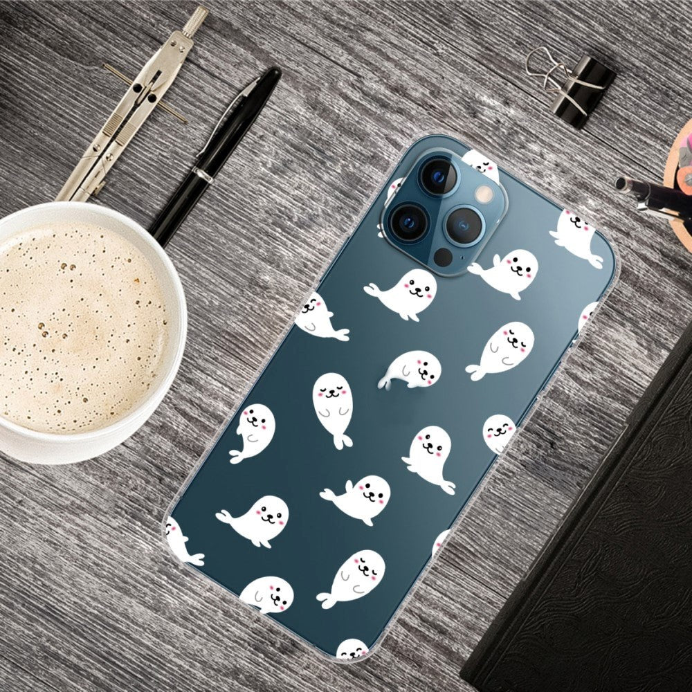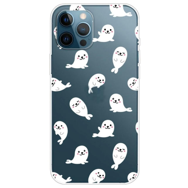 Tynt og fint deksel til iPhone 13 Pro Max , designet i et motiv av Baby Seals. og laget av fleksibel plast med gjennomsiktig kant.
