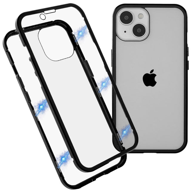 iPhone 14 deksel m. Magnetisk metallkantglass - foran og bak - svart