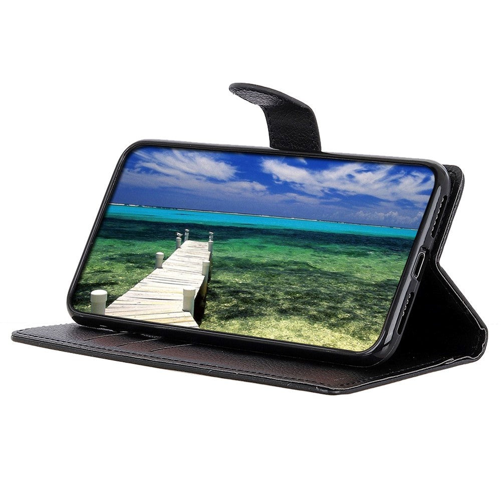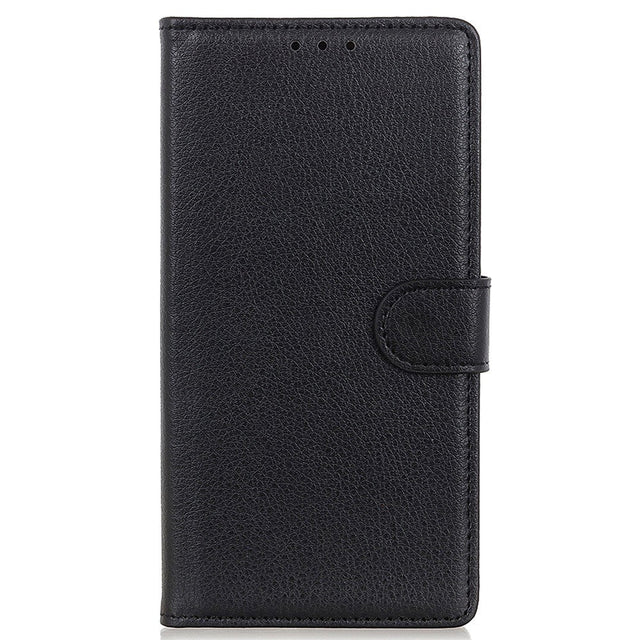 iPhone 14 Pro Litchi Leather Flip Cover m. Lommebok og magnetisk lukking - svart
