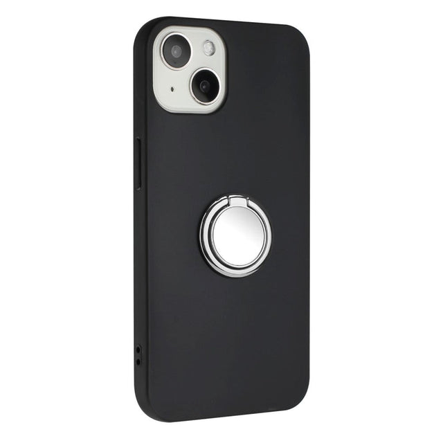 iPhone 15 fleksibelt plastdeksel m. Magnetisk Ring Stativ - Svart m. Sølv ring