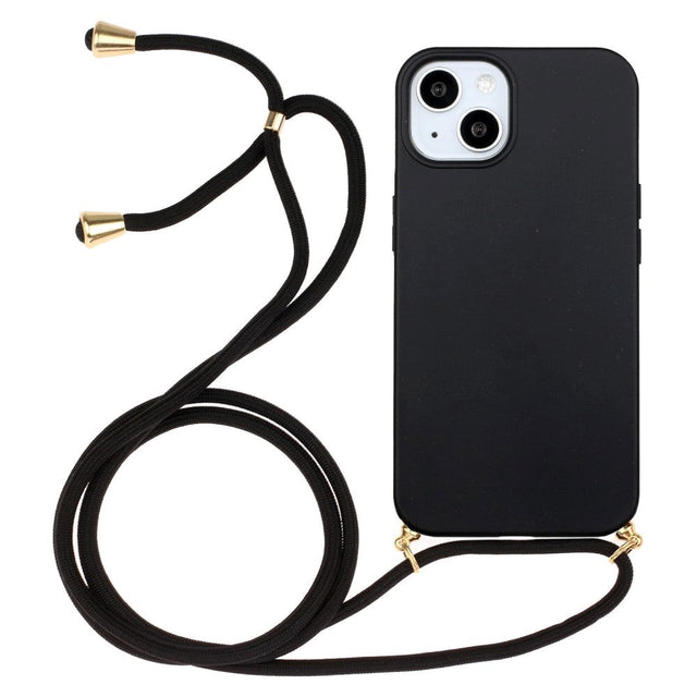 iPhone 15 fleksibelt plastdeksel m. Snor / stropp - Svart