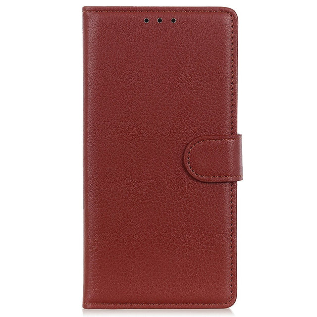 iPhone 15 Litchi Leather Flip Cover m. Lommebok - Brun