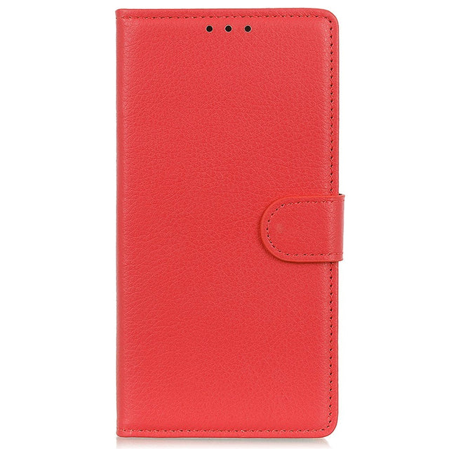 iPhone 15 Litchi Leather Flip Cover m. Lommebok - Rød er i restordre og vil bli sendt så snart det er på lager igjen.