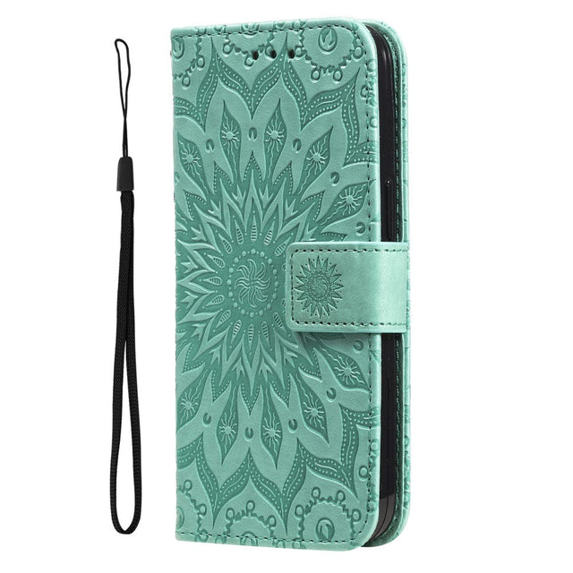 iPhone 15 Pro Leather Flip Cover m. Lommebok og stropp - Mandala Blomst - Grønn er i restordre og vil bli sendt så snart det er på lager igjen.