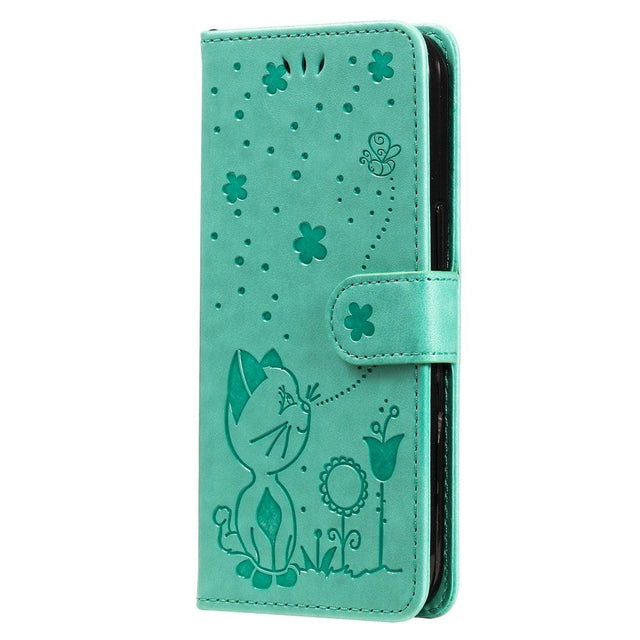 iPhone 15 Pro Leather Flip Cover m. Lommebok og stropp - Kattegravering - Grønn er i restordre og vil bli sendt så snart det er på lager igjen.