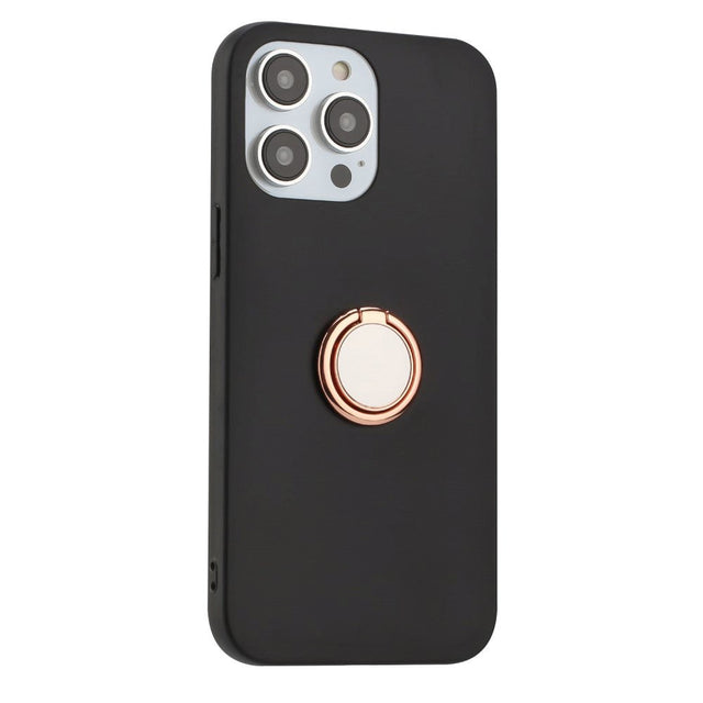 iPhone 15 Pro Max fleksibelt plastdeksel m. Magnetisk Ring Stativ - Svart m. Rose gull ring