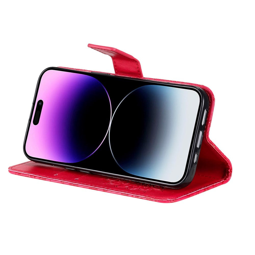 iPhone 15 Pro Max Leather Flip Cover m. Lommebok og stropp - Mandala Blomst - Rød