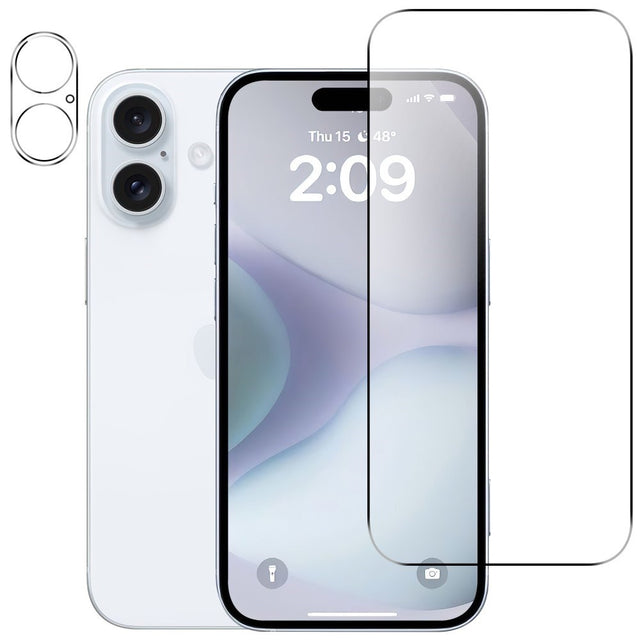 Her er en 2-i-1-pakke som inkluderer både skjermbeskytter og kameralinsebeskytter for iPhone 16 . Med dette omfattende settet øker sjansen for at hele smarttelefonen din er beskyttet mot daglige skader som riper, riper og fall.