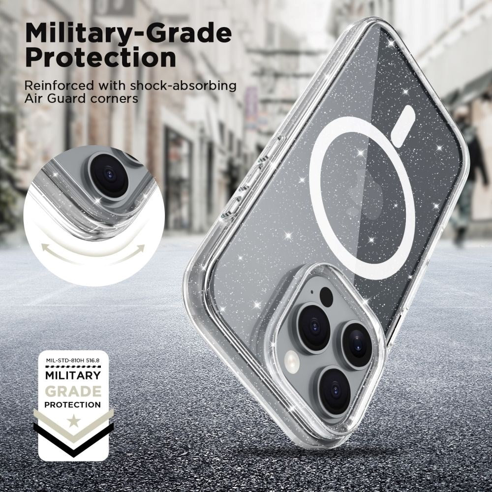 iPhone 16 Pro Tech-Protect Flexair Hybrid-bakdeksel - MagSafe-kompatibel - Gjennomsiktig / glitter