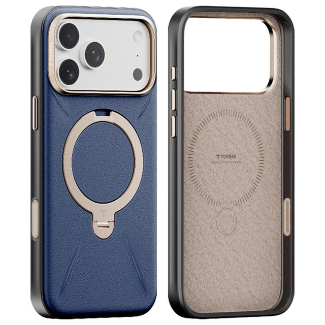 iPhone 17 Pro - TORRAS Ostand Spin Kunstlæder Cover m. Kickstand - MagSafe Kompatibel - Blå