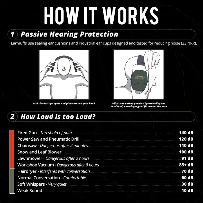 Dette hørselsvernet er perfekt for bruk på jobben, skytebanen eller ved hagearbeid, for eksempel: klipping av plenen eller bruk av løvblåser. Dette hørselsvernet er spesielt fordelaktig på skytebanen, siden utformingen rundt ørene gjør det enkelt å holde hodet i riktig posisjon. I motsetning til mange andre hørselsvern, som er helt runde og kan ta mer plass enn disse.