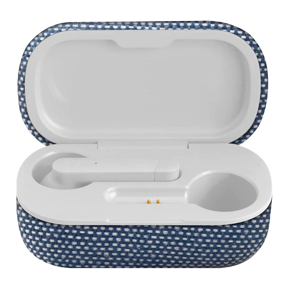 Jaz Chané True Wireless Earphones kombinerer stilig lading via et 400 mAh stoffdekket deksel med avansert Environmental Noise Cancellation (ENC) teknologi som reduserer bakgrunnsstøy under samtaler.