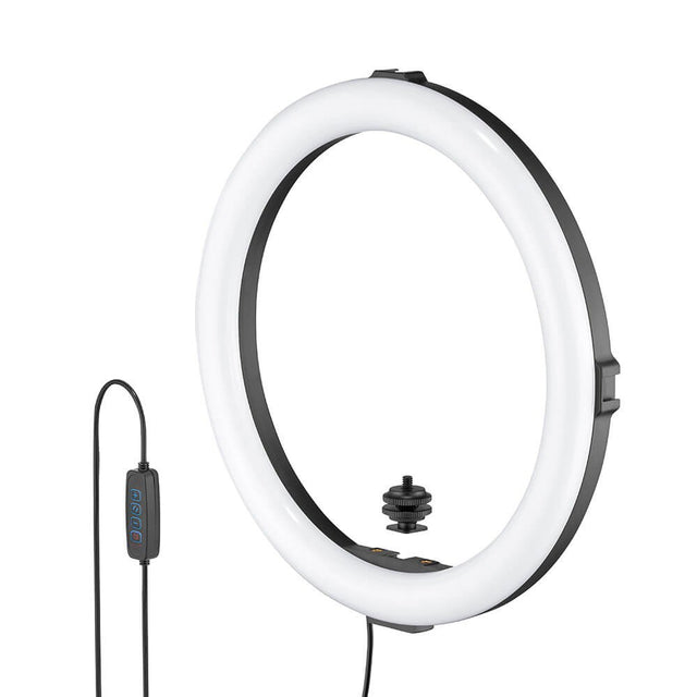MERK: Et stativ er ikke inkludert for denne Ring Light. Du får imidlertid et "Cold Shoe Mount", som lar deg koble det til ditt eget stativ.