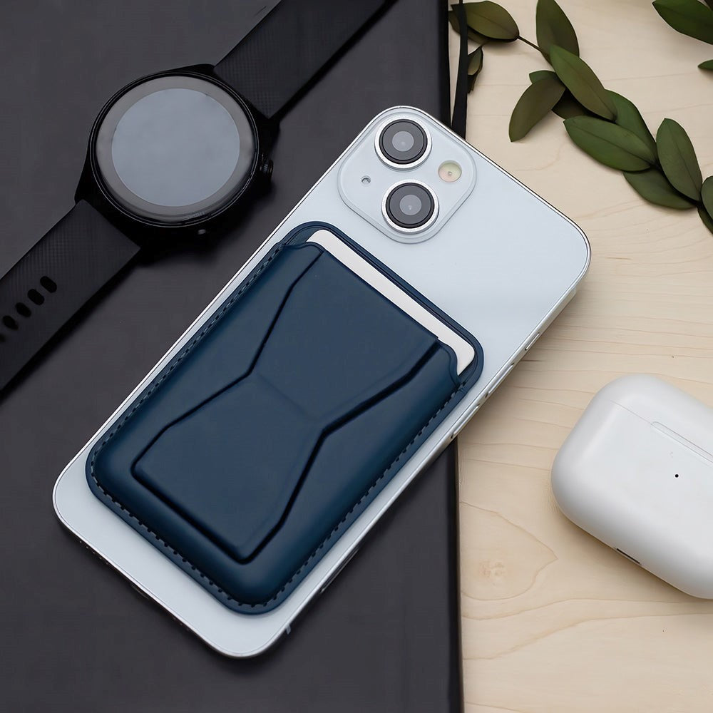 En skinnkortholder med. Stativfunksjonen er perfekt for de som ønsker å gjøre det enkelt å alltid ha med seg de viktigste kortene dine. Dette kan for eksempel være ditt kredittkort og førerkort eller andre kort. Kortholderen har også en stativfunksjon, som er praktisk for f.eks. se filmer, foreta videosamtaler eller andre ting. Stativfunksjonen fungerer både vertikalt og horisontalt, noe som gjør kortholderen egnet for ulike oppgaver.
