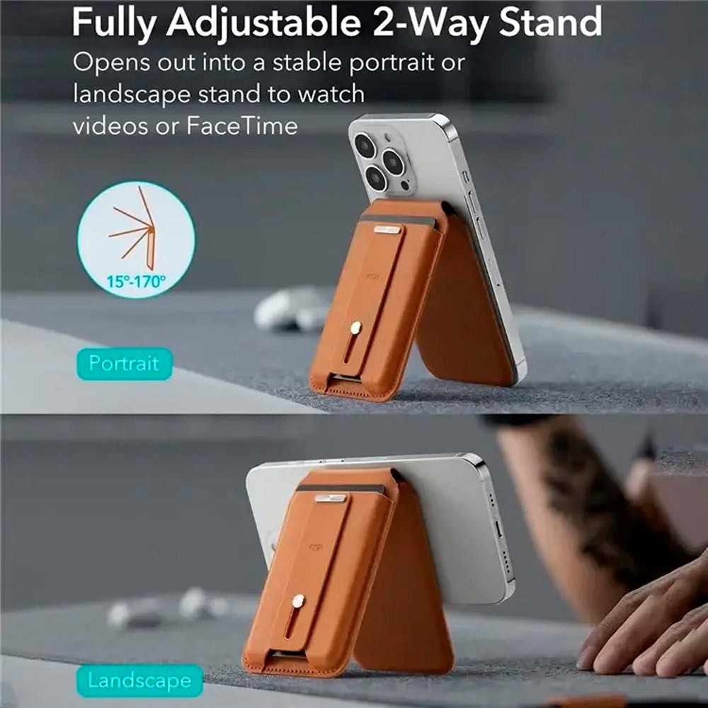 Kortholder med stativfunksjon - ESR GeoWallet - MagSafe-kompatibel - Brun