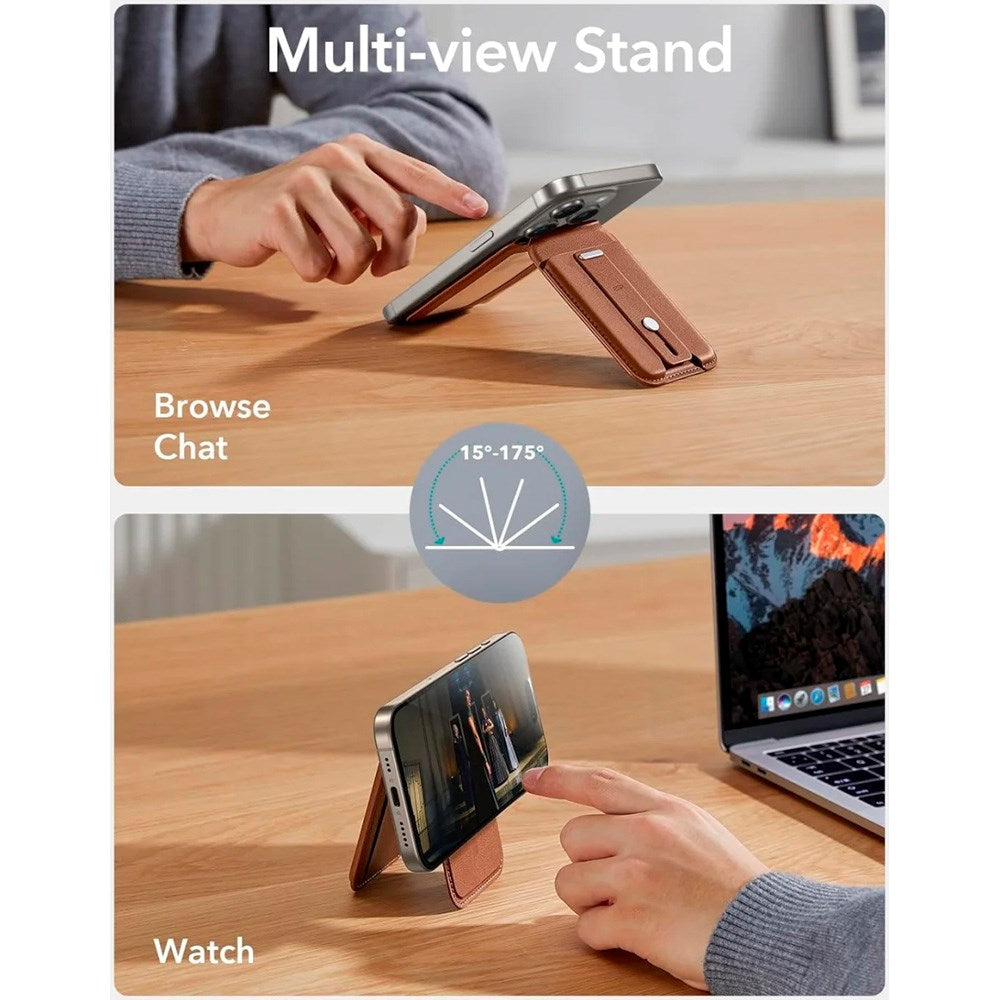 Kortholder med stående funksjon - ESR GripWallet - MagSafe kompatibel - Brun