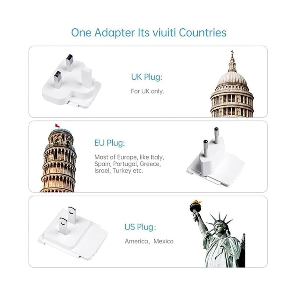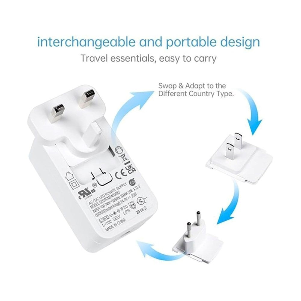 Denne strømforsyningen kommer med flere forskjellige plugger, slik at du kan bruke den i forskjellige land og regioner uten problemer: